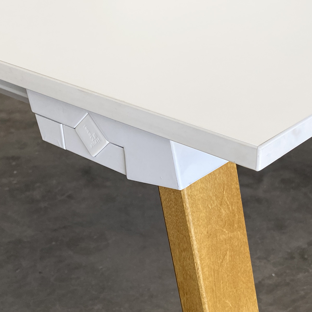 Las tapas, en melamina de 25 mm con canto de 2 mm en ABS airfusion, van fijadas a los nodos y quedan ligeramente sobre elevadas en relación a los travesaños, a los que se fijan mediante unas cuñas separadoras inyectadas.