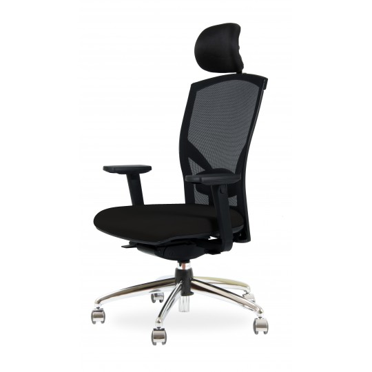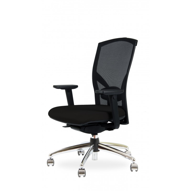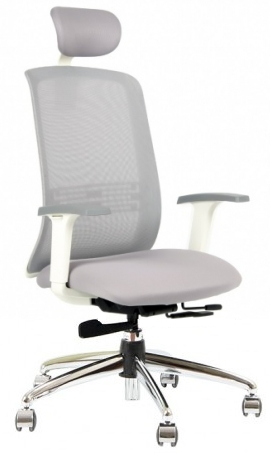 menor peso, cuenta con apoyo lumbar regulable en altura y un delicado respaldo tapizado en red elastic mesh gris que
